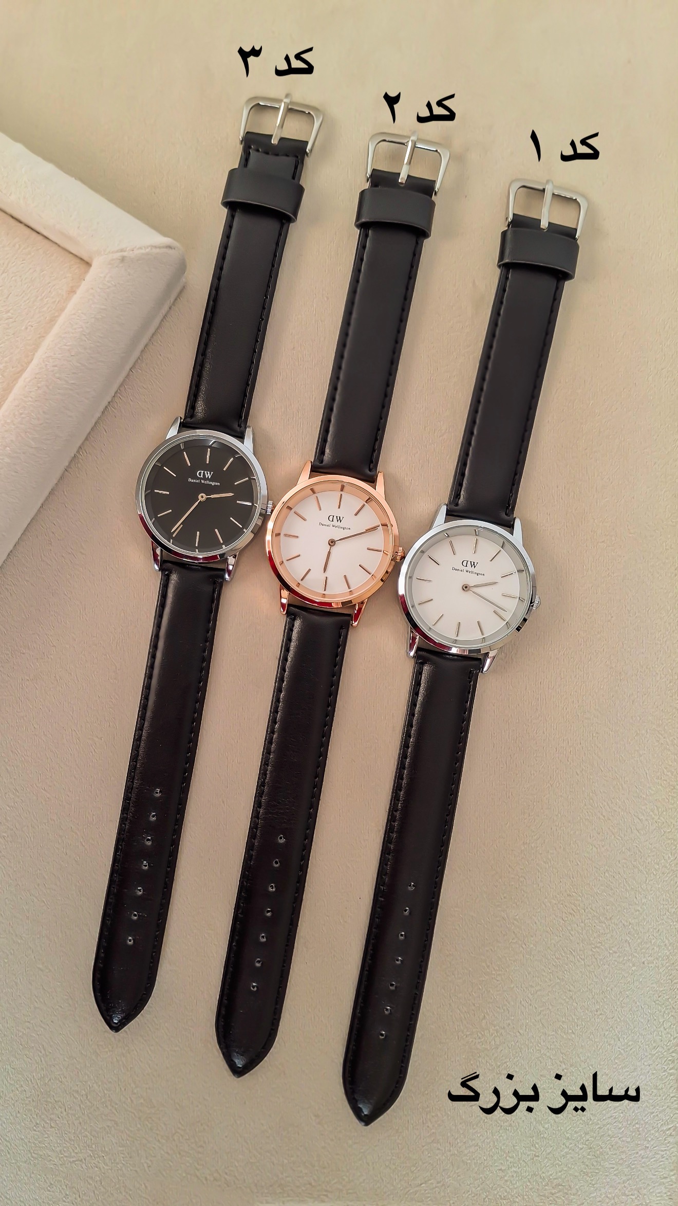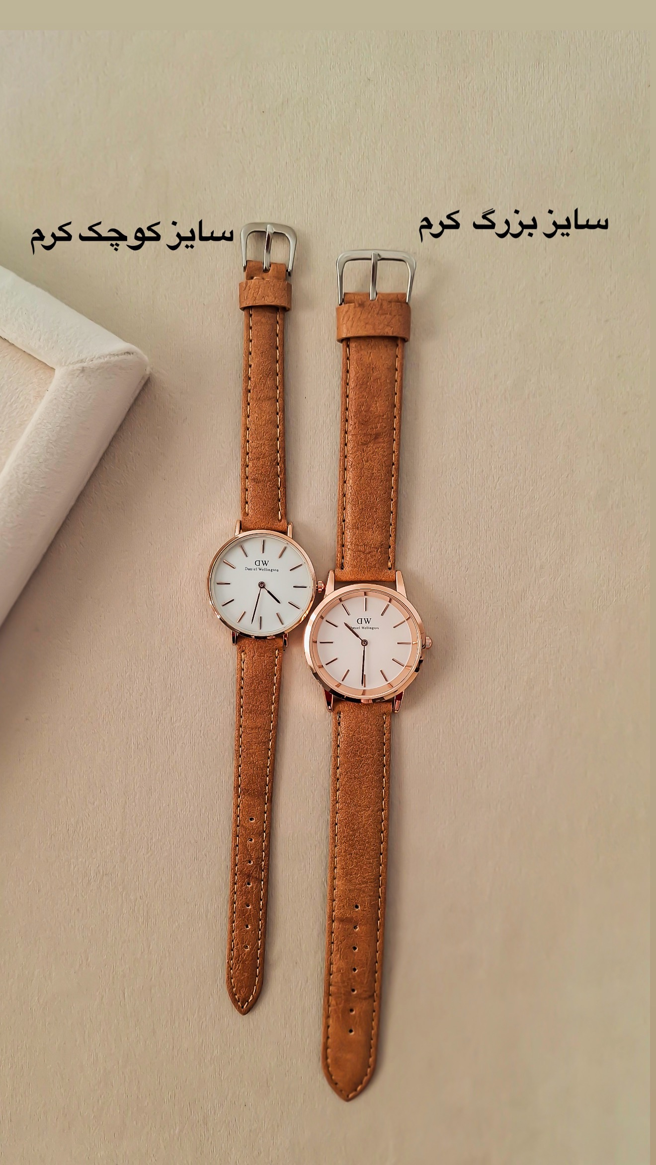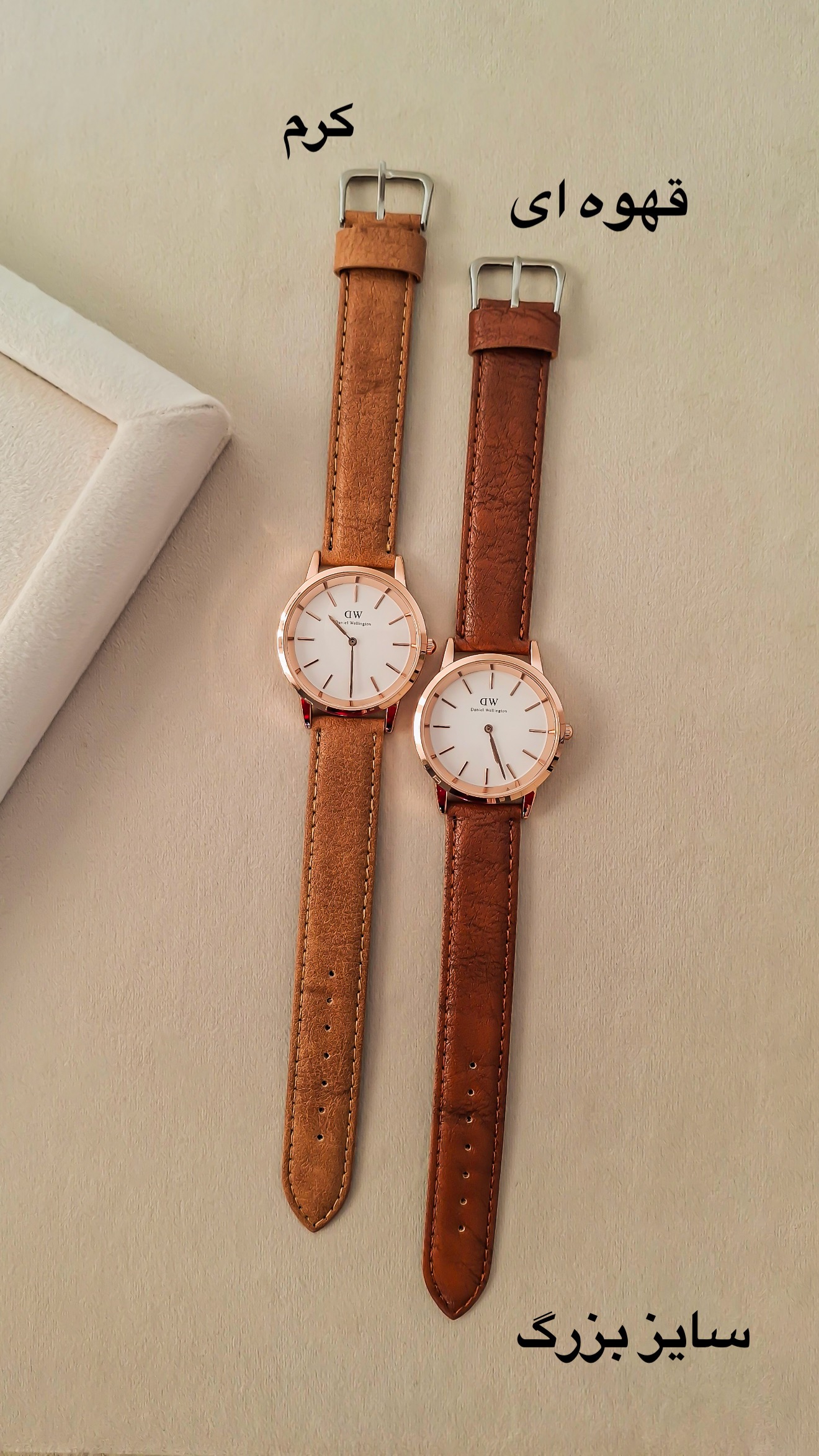 چرم دوخت حم برند داره واشر داره و ضدآبه کار باحالیه چرم دوست داشتین حتما همینه ببرین به پیشنهاد من دو تا سایز داره ۲ ساخت و ۳ سانت اون ۳ سانت رو هم خانم هایی که دست درشت دارن یا ساعت درشت دوست دارن میتونن ببرن هم آقایون